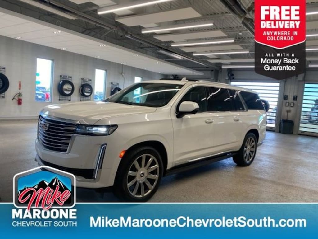 COME SEE THIS BEAUTIFUL 2023 Cadillac Escalade ESV Premium Luxury Platinum AT MIKE MAROONE CHEVROLET SOUTH 230 N ACADEMY BLVD COLORADO SPRINGS CO, 3 DAY 150 MILE MONEY BACK GUARANTEE**, FREE DELIVERY ANYWHERE IN COLORADO**, 60 DAY POWERTRAIN WARRANTY**, CERTIFIED 1 OWNER VEHICLE**, 1 FREE MONTH ONSTAR (IF EQUIPPED)**, 3 FREE MONTHS XM RADIO (IF EQUIPPED)**, 3RD ROW SEATING**, 4 WHEEL DRIVE**, 8 COLOR TOUCHSCREEN**, APPLE CARPLAY**, ANDROID AUTO**, AIR CONDITIONING**, ALLOY WHEELS**, AUTO LOCKING REAR DIFFERENTIAL**, BLIND SPOT MONITOR**, POWER TILT & TELESCOPIC STEERING COLUMN**, BLUETOOTH - HANDS FREE**, BOSE PREMIUM STEREO**, FRESH OIL & FILTER CHANGE**, FRONT & REAR BRAKES**, FRONT AND REAR PARK ASSIST**, HANDS FREE LIFTGATE**, HEADS UP DISPLAY**, HEATED 2ND ROW SEATS**, HEATED AND VENTILATED SEATS**, HEATED SEATS**, HEATED STEERING WHEEL**, LANE CHANGE ALERT WITH SIDE BLIND ZONE ALERT**, LANE KEEP ASSIST**, LEATHER SEATS**, PASSIVE ENTRY SYSTEM**, KEYLESS OPEN**, KEYLESS START**, KEYLESS ENTRY**, POWER HEATED OUTSIDE MIRRORS**, CRUISE CONTROL**, POWER WINDOWS**, POWER LOCKS**, POWER REAR LIFTGATE**, POWER SEAT**, REAR BACK UP CAMERA**, REAR CROSS TRAFFIC ALERT**, REMOTE VEHICLE START**, RUNNING BOARDS**, SERVICE RECORDS AVAILABLE**, STEERING WHEEL AUDIO CONTROLS**, TOW PACKAGE**, TRAILERING EQUIPMENT**, WIRELESS CHARGING**. AWD Certification Program Details: This 2023 Cadillac Escalade ESV Premium Luxury Platinum also comes with the FULL Mike Maroone 60-Day warranty. We will review the technician's vehicle inspection report with you before purchase. Our intention is to provide you a completely transparent buying experience. At Mike Maroone our used vehicles are Safety Checked, Warrantied, CARFAX, and if you don't like it ... Bring it back! All of our new and used vehicles come with the Mike Maroone Preferred Owner Advantages listed below: - MARKET BASED PRICING - 3 DAY/150 MILE MONEY BACK GUARANTEE - FREE LOANERS FOR SERVICE GUESTS WHO SET AN ONLINE APPOINTMENT - 12 MONTH/12K MILE SERVICE/COLLISION GUARANTEE - 60 DAY LIMITED POWERTRAIN PRE-OWNED VEHICLE WARRANTY - MILITARY DEPLOYMENT BUYBACK GUARANTEE - FREE DELIVERY ANYWHERE IN COLORADO For more information or vehicles like it, stop by Mike Maroone South today. We are just south of the Citadel Mall on the corner of Academy and Bijou.