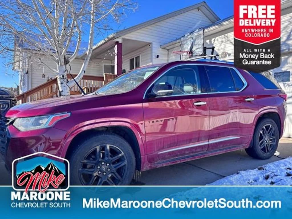 COME SEE THIS BEAUTIFUL 2019 Chevrolet Traverse Premier AT MIKE MAROONE CHEVROLET SOUTH 230 N ACADEMY BLVD COLORADO SPRINGS CO, 3 DAY 150 MILE MONEY BACK GUARANTEE**, FREE DELIVERY ANYWHERE IN COLORADO**, 60 DAY POWERTRAIN WARRANTY**, 1 FREE MONTH ONSTAR (IF EQUIPPED)**, 3 FREE MONTHS XM RADIO (IF EQUIPPED)**, 3RD ROW SEATING**, 8 COLOR TOUCHSCREEN**, APPLE CARPLAY**, ANDROID AUTO**, AIR CONDITIONING**, ALL WHEEL DRIVE**, ALLOY WHEELS**, BLIND SPOT MONITOR**, BLUETOOTH - HANDS FREE**, FRESH OIL & FILTER CHANGE**, FRONT & REAR BRAKES**, HEATED SEATS**, HEATED STEERING WHEEL**, LEATHER SEATS**, NAVIGATION SYSTEM**, PASSIVE ENTRY SYSTEM**, KEYLESS OPEN**, KEYLESS START**, KEYLESS ENTRY**, POWER HEATED OUTSIDE MIRRORS**, CRUISE CONTROL**, POWER WINDOWS**, POWER LOCKS**, POWER REAR LIFTGATE**, POWER SEAT**, REAR BACK UP CAMERA**, REAR CROSS TRAFFIC ALERT**, REMOTE VEHICLE START**, SERVICE RECORDS AVAILABLE**, STEERING WHEEL AUDIO CONTROLS**. AWD Certification Program Details: This 2019 Chevrolet Traverse Premier also comes with the FULL Mike Maroone 60-Day warranty. We will review the technician's vehicle inspection report with you before purchase. Our intention is to provide you a completely transparent buying experience. At Mike Maroone our used vehicles are Safety Checked, Warrantied, CARFAX, and if you don't like it ... Bring it back! All of our new and used vehicles come with the Mike Maroone Preferred Owner Advantages listed below: - MARKET BASED PRICING - 3 DAY/150 MILE MONEY BACK GUARANTEE - FREE LOANERS FOR SERVICE GUESTS WHO SET AN ONLINE APPOINTMENT - 12 MONTH/12K MILE SERVICE/COLLISION GUARANTEE - 60 DAY LIMITED POWERTRAIN PRE-OWNED VEHICLE WARRANTY - MILITARY DEPLOYMENT BUYBACK GUARANTEE - FREE DELIVERY ANYWHERE IN COLORADO For more information or vehicles like it, stop by Mike Maroone South today. We are just south of the Citadel Mall on the corner of Academy and Bijou.
