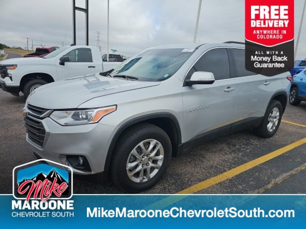 COME SEE THIS BEAUTIFUL 2021 Chevrolet Traverse LT AT MIKE MAROONE CHEVROLET SOUTH 230 N ACADEMY BLVD COLORADO SPRINGS CO, 3 DAY 150 MILE MONEY BACK GUARANTEE**, FREE DELIVERY ANYWHERE IN COLORADO**, 60 DAY POWERTRAIN WARRANTY**, 1 FREE MONTH ONSTAR (IF EQUIPPED)**, 3 FREE MONTHS XM RADIO (IF EQUIPPED)**, 2 SETS OF KEYS**, 3RD ROW SEATING**, 8 COLOR TOUCHSCREEN**, APPLE CARPLAY**, ANDROID AUTO**, AIR CONDITIONING**, ALLOY WHEELS**, BLUETOOTH - HANDS FREE**, FRESH OIL & FILTER CHANGE**, FRONT & REAR BRAKES**, HEATED SEATS**, MP3- USB- AUX PORT**, PASSIVE ENTRY SYSTEM**, KEYLESS OPEN**, KEYLESS START**, KEYLESS ENTRY**, POWER HEATED OUTSIDE MIRRORS**, CRUISE CONTROL**, POWER WINDOWS**, POWER LOCKS**, POWER SEAT**, REAR BACK UP CAMERA**, REAR CROSS TRAFFIC ALERT**, REMOTE VEHICLE START**, SERVICE RECORDS AVAILABLE**, STEERING WHEEL AUDIO CONTROLS**. FWD Certification Program Details: This 2021 Chevrolet Traverse LT also comes with the FULL Mike Maroone 60-Day warranty. We will review the technician's vehicle inspection report with you before purchase. Our intention is to provide you a completely transparent buying experience. At Mike Maroone our used vehicles are Safety Checked, Warrantied, CARFAX, and if you don't like it ... Bring it back! All of our new and used vehicles come with the Mike Maroone Preferred Owner Advantages listed below: - MARKET BASED PRICING - 3 DAY/150 MILE MONEY BACK GUARANTEE - FREE LOANERS FOR SERVICE GUESTS WHO SET AN ONLINE APPOINTMENT - 12 MONTH/12K MILE SERVICE/COLLISION GUARANTEE - 60 DAY LIMITED POWERTRAIN PRE-OWNED VEHICLE WARRANTY - MILITARY DEPLOYMENT BUYBACK GUARANTEE - FREE DELIVERY ANYWHERE IN COLORADO For more information or vehicles like it, stop by Mike Maroone South today. We are just south of the Citadel Mall on the corner of Academy and Bijou.
