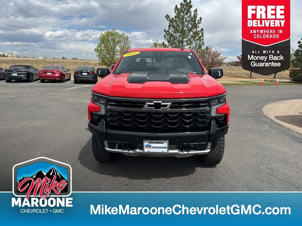 Clean CARFAX. CARFAX One-Owner. Red Hot 2025 Chevrolet Silverado 1500 ZR2 4WD 10-Speed Automatic EcoTec3 6.2L V8 FREE DELIVERY ANYWHERE IN COLORADO, LOCAL TRADE IN, COME TEST DRIVE!, SET YOUR TEST DRIVE APPOINTMENT TODAY, 10-Speed Automatic, 4WD, Jet Black/Graystone Leather.