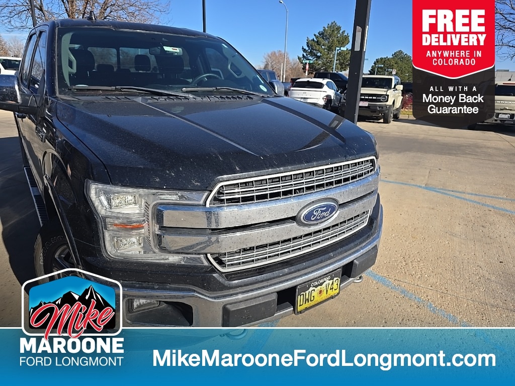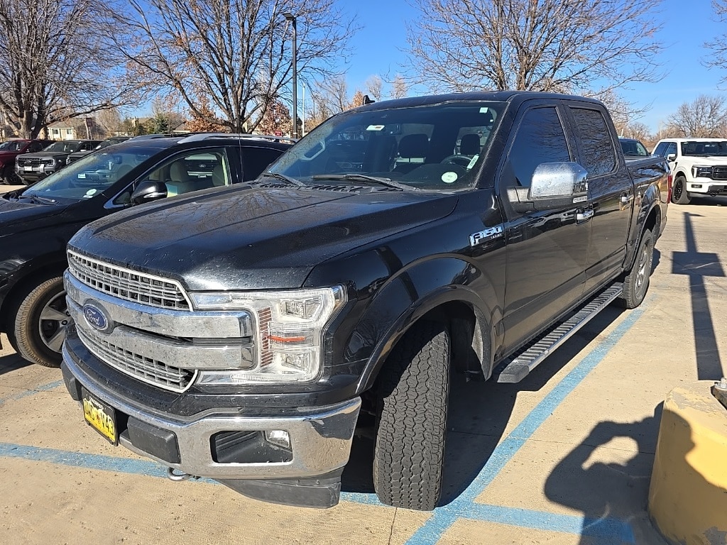 Recent Arrival at Mike Maroone Ford! Clean CARFAX. CARFAX One-Owner. BLUE CERTIFIED, 4 WHEEL DRIVE, LEATHER SEATING, HEATED SEATS, APPLE CARPLAY/ANDROID AUTO, BLUETOOTH/HANDS FREE, REAR BACKUP CAMERA, LOCAL TRADE, Shadow Black, Lariat Chrome Appearance Package, Single-Tip Chrome Exhaust, Chrome Angular Step Bars, Chrome Door and Tailgate Handles with Body-Color Bezel, 18" Chrome-Like PVD Wheels, Chrome 3-Bar Grille with Chrome Surround, Body-Color Mirror Caps, Front License Plate Bracket, Equipment Group 502A Luxury, Blind Spot Info System (BLIS), LED Side-Mirror Spotlights, Remote Start System, 110V/400W Outlet, Power Sliding Rear Window with Defrost & Privacy Tint, LED Box Lighting, LED Headlamps, B&O Premium Audio System, Voice-Activated Navigation, SiriusXM, Heated Steering Wheel, Heated/Ventilated Front Seats, Leather-Trimmed Interior, Dual-Zone Electronic Auto Climate Control, Power Adjustable Pedals with Memory, Power Tilt/Telescoping Steering Column with Memory, Rain-Sensing Windshield Wipers, Remote Tailgate Release, BoxLink, Power Deployable Running Boards, LED Fog Lamps, FX4 Off-Road Package, Off-Road Tuned Front Shocks, Skid Plates, Hill Descent Control, Electronic-Locking 3.31 Rear Axle, Extended Range 36-Gallon Fuel Tank, Technology Package, Lane-Keeping System, Active Park Assist, Tailgate Step, Tow Package, Pro Trailer Backup Assist, Trailer Brake Controller, Engine Block Heater, 360-Degree Camera, Adaptive Cruise Control with Collision Warning & Brake Support, Twin Panel Moonroof, Second-Row Heated Seats, Power-Sliding Rear Window, LED Taillamps, SYNC 3, 5.0L V8 Engine, 6-Speed Electronic Transmission, 275/65 R18 OWL A/T Tires.. Odometer is 36434 miles below market average! Shadow Black 2018 Ford F-150 Lariat 4D SuperCrew 3.5L V6 EcoBoost 10-Speed Automatic 4WD