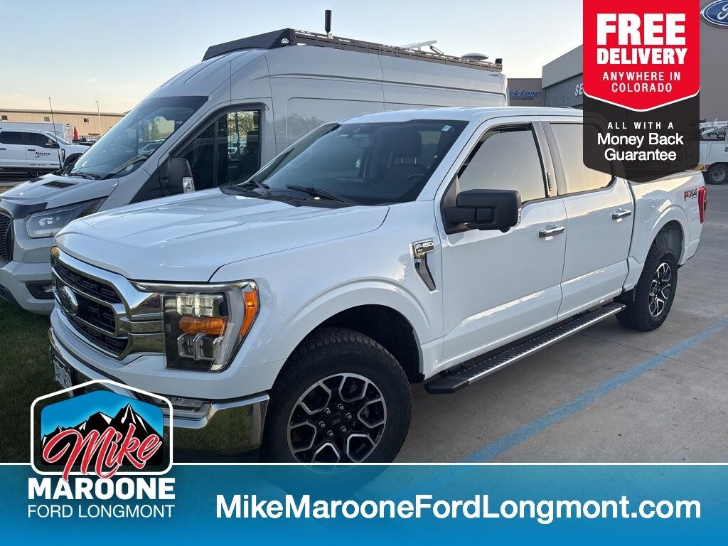 FREE DELIVERY ANYWHERE IN COLORADO, 3.5L V6 EcoBoost engine, 10-speed automatic transmission, 4x4 drivetrain, XLT trim, SuperCrew cab, 145" wheelbase, Oxford White exterior, dark slate cloth interior with 40/console/40 seating, Equipment Group 302A, dual-zone electronic automatic climate control, SYNC 4 infotainment system, SiriusXM radio, LED side-mirror spotlights, LED box lighting, remote start system, chrome appearance package, 18" chrome-like PVD wheels, 275/65R18 all-terrain tires, 3.31 electronic locking rear axle, 7050 lb GVWR package, trailer tow package, integrated trailer brake controller, FX4 off-road package, skid plates, hill descent control, chrome step bars, tailgate step, extended range 36-gallon fuel tank, 360-degree camera package, Ford Co-Pilot360 Assist 2.0 (adaptive cruise control, lane centering, navigation), rear view camera, reverse sensing system, blind spot monitoring, pre-collision assist with automatic emergency braking. Odometer is 31949 miles below market average! Oxford White 2021 Ford F-150 XLT 4D SuperCrew 3.5L V6 EcoBoost 10-Speed Automatic 4WD