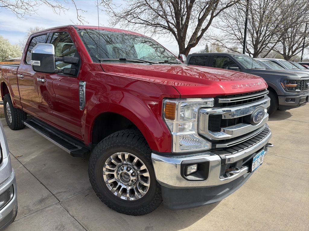 CARFAX One-Owner. FREE DELIVERY ANYWHERE IN COLORADO, 2021 Ford F-250 Super Duty XLT 4x4 Crew Cab, 7.3L V8 Gas Engine, 10-Speed Automatic Transmission, 160" Wheelbase, Rapid Red Exterior, Medium Light Camel Cloth Interior, 4WD, Preferred Equipment Package 603A, FX4 Off-Road Package, Electronic Locking Rear Axle, Trailer Tow Package, Trailer Brake Controller, Trailer Sway Control, BLIS w/ Cross-Traffic Alert, Pre-Collision Assist w/ AEB, Reverse Sensing System, Rear View Camera, FordPass Connect w/ 4G WiFi Hotspot, SYNC 3 w/ 8" Touchscreen, SiriusXM Satellite Radio, Navigation System, 110V/400W Outlet, Power Windows & Door Locks, Remote Keyless Entry, Cruise Control, Air Conditioning, Tilt/Telescoping Steering Column, Steering Wheel Audio Controls, Power Driver Seat (8-Way), Angular Chrome Step Bars, Chrome PVD Aluminum Wheels (18"), Fog Lamps, BoxLink System, LED Box Lighting, Privacy Glass (Rear Doors), Spare Tire & Wheel Lock, Jack, Tow Hooks, AdvanceTrac w/ RSC, Traction Control, Tire Pressure Monitoring System (TPMS).. Rapid Red Metallic Tinted Clearcoat 2021 Ford F-250SD XLT 4D Crew Cab 7.3L V8 PFI SOHC 16V Federal 385hp 10-Speed Automatic 4WD