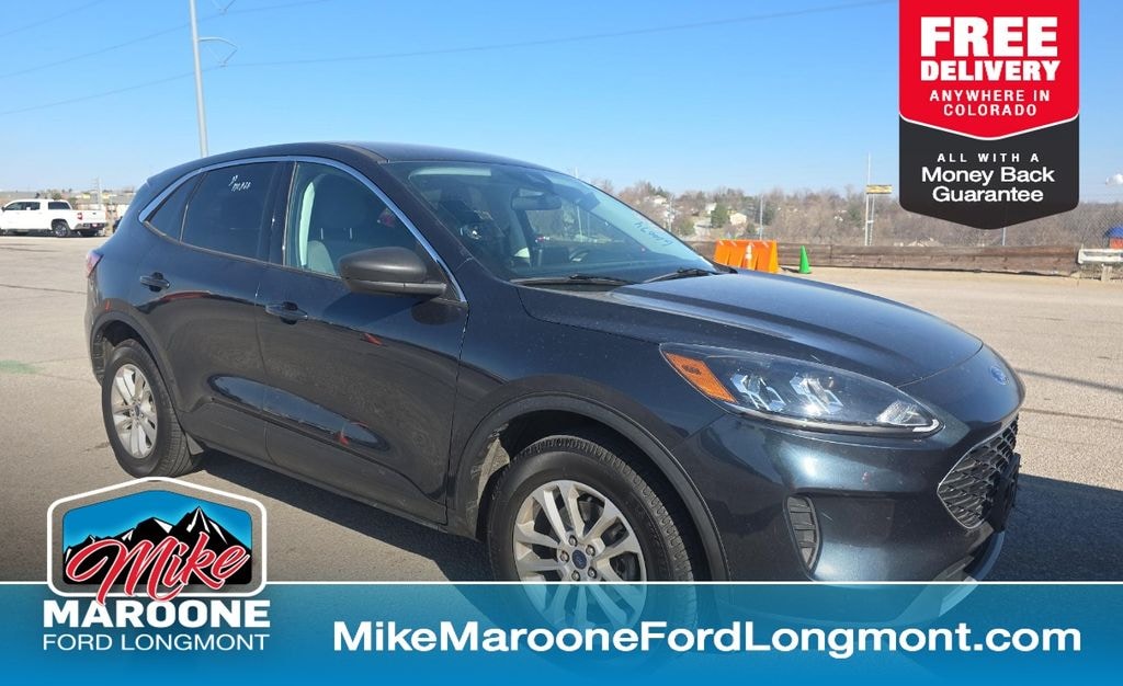 CARFAX One-Owner. FREE DELIVERY ANYWHERE IN COLORADO, 2022 Ford Escape SE AWD, 1.5L EcoBoost Engine w/ Auto Start-Stop, 8-Speed Automatic Transmission, Stone Blue Metallic Exterior, Dark Earth Gray Cloth Interior, All-Wheel Drive, Equipment Group 200A, FordPass Connect 4G LTE WiFi Hotspot, SYNC 3 w/ 8" Touchscreen, Apple CarPlay & Android Auto, Rear View Camera, Blind Spot Information System (BLIS) w/ Cross-Traffic Alert, Lane-Keeping System, Pre-Collision Assist w/ Automatic Emergency Braking, Auto Start-Stop Technology, Electronic Parking Brake, Rotary Gear Shift Dial, Manual Driver Seat (6-Way) & Passenger Seat (4-Way), Split-Fold Rear Seats, Dual Illuminated Vanity Mirrors, Power Windows & Locks, Cruise Control, Powerpoints 12V, USB Ports (A & C), 17" Shadow Silver-Painted Aluminum Wheels, Mini Spare Wheel/Tire, LED Taillamps, Rear Privacy Glass, Easy Fuel Capless Filler, Dual Chrome Exhaust Tips, 28 MPG Combined Fuel Economy,. Stone Blue Metallic 2022 Ford Escape SE 4D Sport Utility 1.5L EcoBoost 8-Speed Automatic AWD