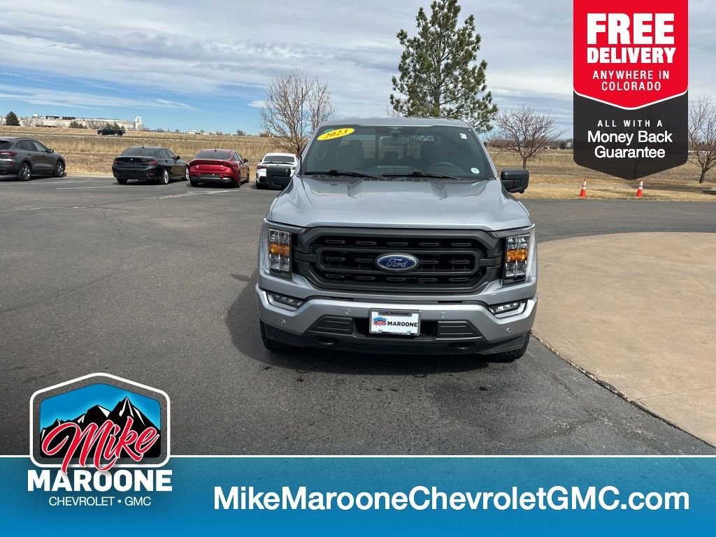 Clean CARFAX. Silver Metallic 2023 Ford F-150 XLT 4WD 10-Speed Automatic 3.5L PowerBoost Full-Hybrid V6 FREE DELIVERY ANYWHERE IN COLORADO, NAVIGATION, 4 WHEEL DRIVE, LEATHER SEATS, RUNNING BOARDS, LANE DEPARTURE, TOW HITCH, LOCAL TRADE IN, COME TEST DRIVE!, SET YOUR TEST DRIVE APPOINTMENT TODAY, 3.5L PowerBoost Full-Hybrid V6, 4WD.