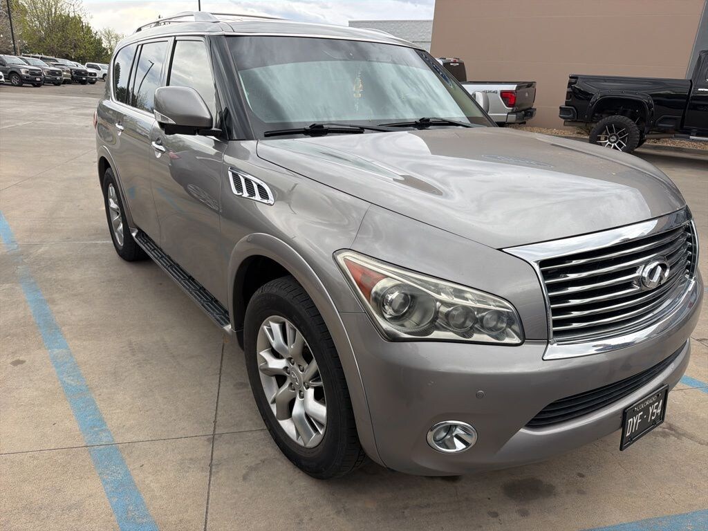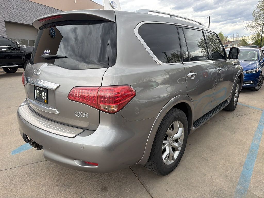 FREE DELIVERY ANYWHERE IN COLORADO, 2013 INFINITI QX56, 5.6L DOHC 32-Valve V8 Engine, 7-Speed Automatic Transmission, Rear Wheel Drive, Platinum Graphite Exterior, Gray Interior, Leather-Appointed Seats w/ Tuscan Burl Trim, Heated Front Seats, Heated Second Row Seats, Power Front Seats, Theater Package, Dual 7" Rear Entertainment Screens, Wireless Headphones (2), 120V Power Outlet, Roof Rail Crossbars, Carpeted Cargo Mat/Net & First Aid Kit, Literature Kit, Activation Disclaimer, 20" 5-Spoke Aluminum Alloy Wheels, Bose Premium Sound System, Rear Seat Entertainment System, Tow Package, Premium Luxury SUV. Platinum Graphite 2013 INFINITI QX56 4D Sport Utility 5.6L V8 DOHC 32V 7-Speed Automatic AWD