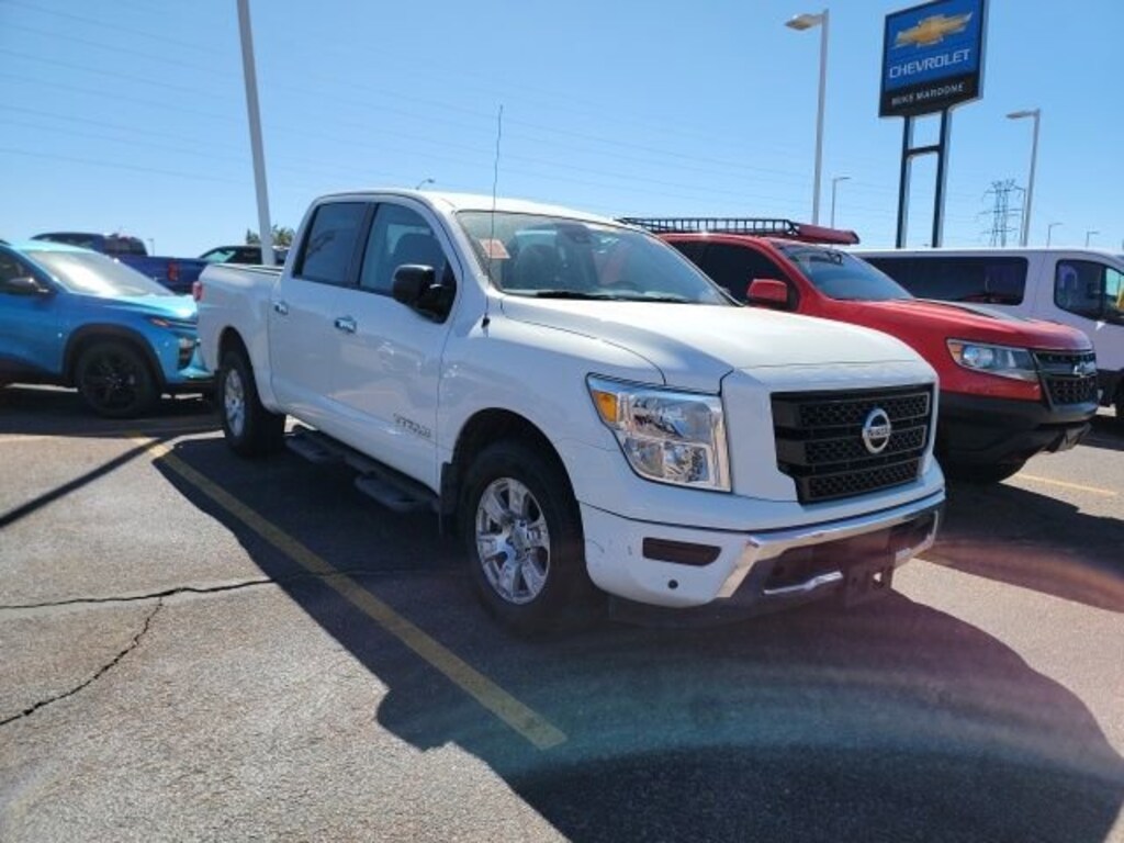 COME SEE THIS BEAUTIFUL 2021 Nissan Titan AT MIKE MAROONE CHEVROLET SOUTH 230 N ACADEMY BLVD COLORADO SPRINGS CO, 3 DAY 150 MILE MONEY BACK GUARANTEE**, FREE DELIVERY ANYWHERE IN COLORADO**, 60 DAY POWERTRAIN WARRANTY**, APPLE CARPLAY**, ANDROID AUTO**, AIR CONDITIONING**, ALLOY WHEELS**, BLUETOOTH - HANDS FREE**, FRESH OIL & FILTER CHANGE**. RWD Certification Program Details: This 2021 Nissan Titan also comes with the FULL Mike Maroone 60-Day warranty. We will review the technician's vehicle inspection report with you before purchase. Our intention is to provide you a completely transparent buying experience. At Mike Maroone our used vehicles are Safety Checked, Warrantied, CARFAX, and if you don't like it ... Bring it back! All of our new and used vehicles come with the Mike Maroone Preferred Owner Advantages listed below: - MARKET BASED PRICING - 3 DAY/150 MILE MONEY BACK GUARANTEE - FREE LOANERS FOR SERVICE GUESTS WHO SET AN ONLINE APPOINTMENT - 12 MONTH/12K MILE SERVICE/COLLISION GUARANTEE - 60 DAY LIMITED POWERTRAIN PRE-OWNED VEHICLE WARRANTY - MILITARY DEPLOYMENT BUYBACK GUARANTEE - FREE DELIVERY ANYWHERE IN COLORADO For more information or vehicles like it, stop by Mike Maroone South today. We are just south of the Citadel Mall on the corner of Academy and Bijou.