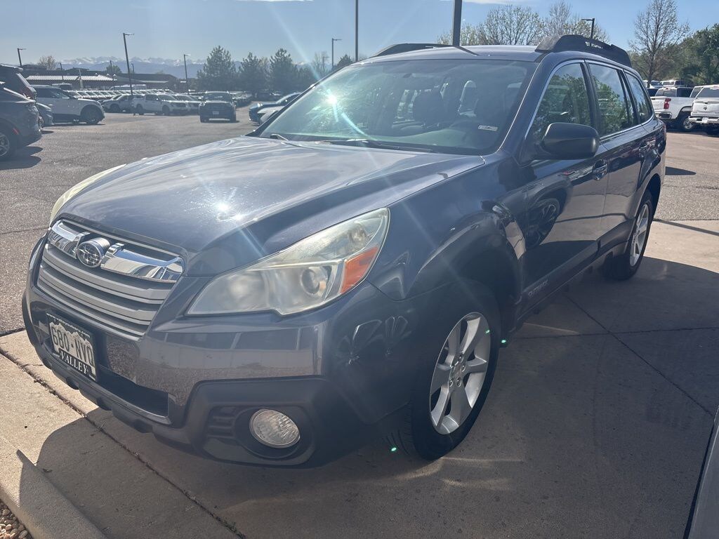 CARFAX One-Owner. FREE DELIVERY ANYWHERE IN COLORADO, 2.5L DOHC 16-valve 4-cylinder engine, Continuously Variable Transmission (CVT), Symmetrical All-Wheel Drive, 3.90 axle ratio, P215/70R16 all-season tires, 16" steel wheels with full covers, front bucket seats, cloth upholstery, AM/FM stereo with single-disc CD player, steering wheel paddle-shift control switches, black interior, Carbide Gray Metallic exterior. Odometer is 31040 miles below market average! Carbide Gray Metallic 2014 Subaru Outback 2.5i 4D Sport Utility 2.5L 4-Cylinder DOHC 16V CVT Lineartronic AWD